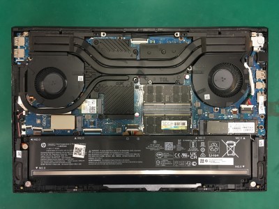 HP OMEN 16シリーズはゲーミングノートPCのため、左右に独立した冷却ファンを搭載しています。