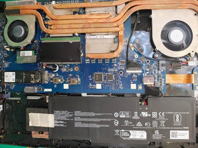 ゲーミングノートは CPU用ファン と GPU用ファン の2基構成が一般的で、今回のmsi KATANA 17も例外ではありません。