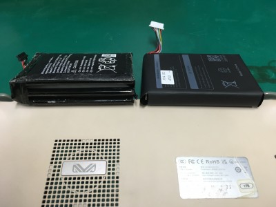 リチウムイオンバッテリーが寿命を迎えると、ガスが発生して膨らむことがありますが、再利用は不可能で、修理方法はバッテリー交換のみ となります。